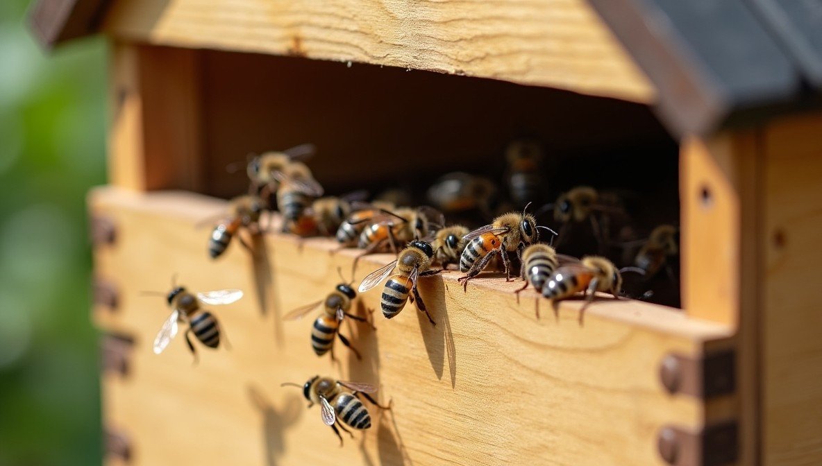 A drone of bees filled the garden.