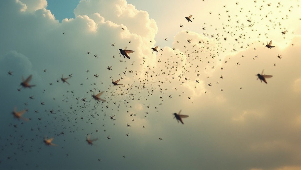 Летом в тёплом воздухе слышно, как насекомые жужжат.