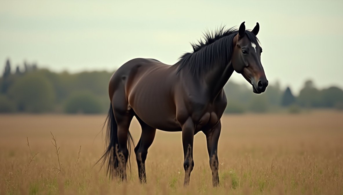 Корова спокойно паслась на лугу.