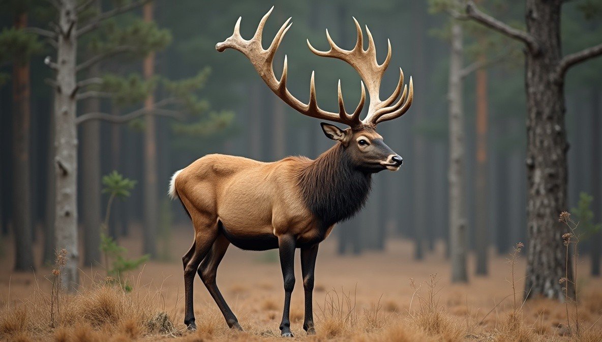 Дикое парнокопытное млекопитающее с ветвистыми рогами.