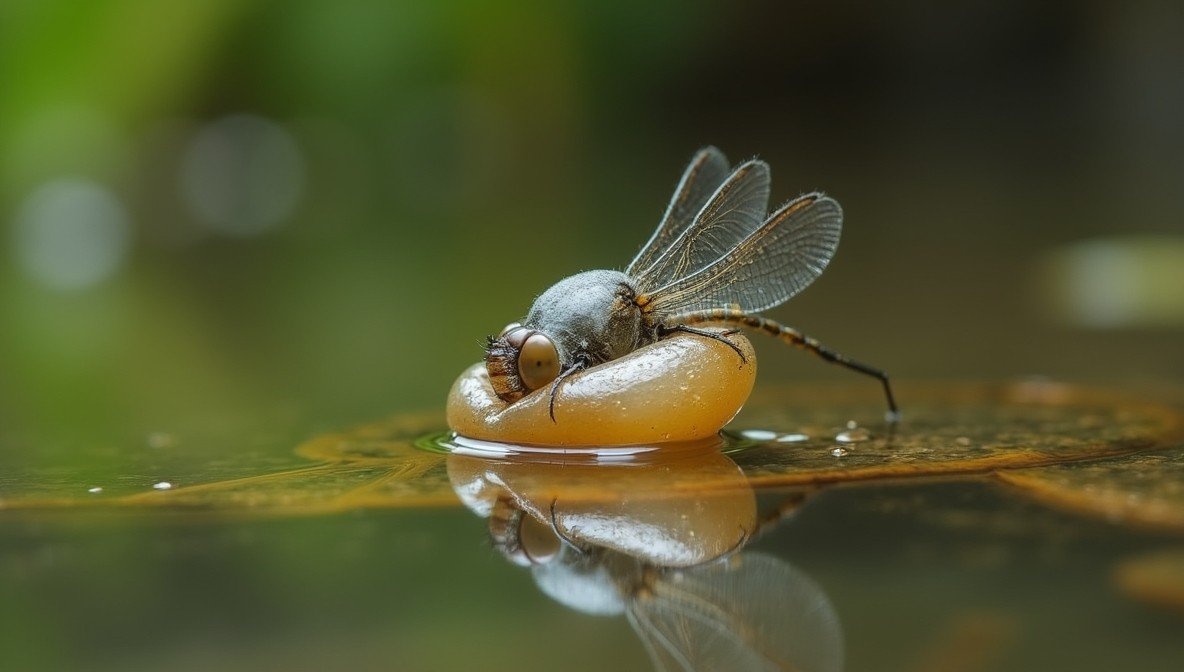 The light attracts a small moth.